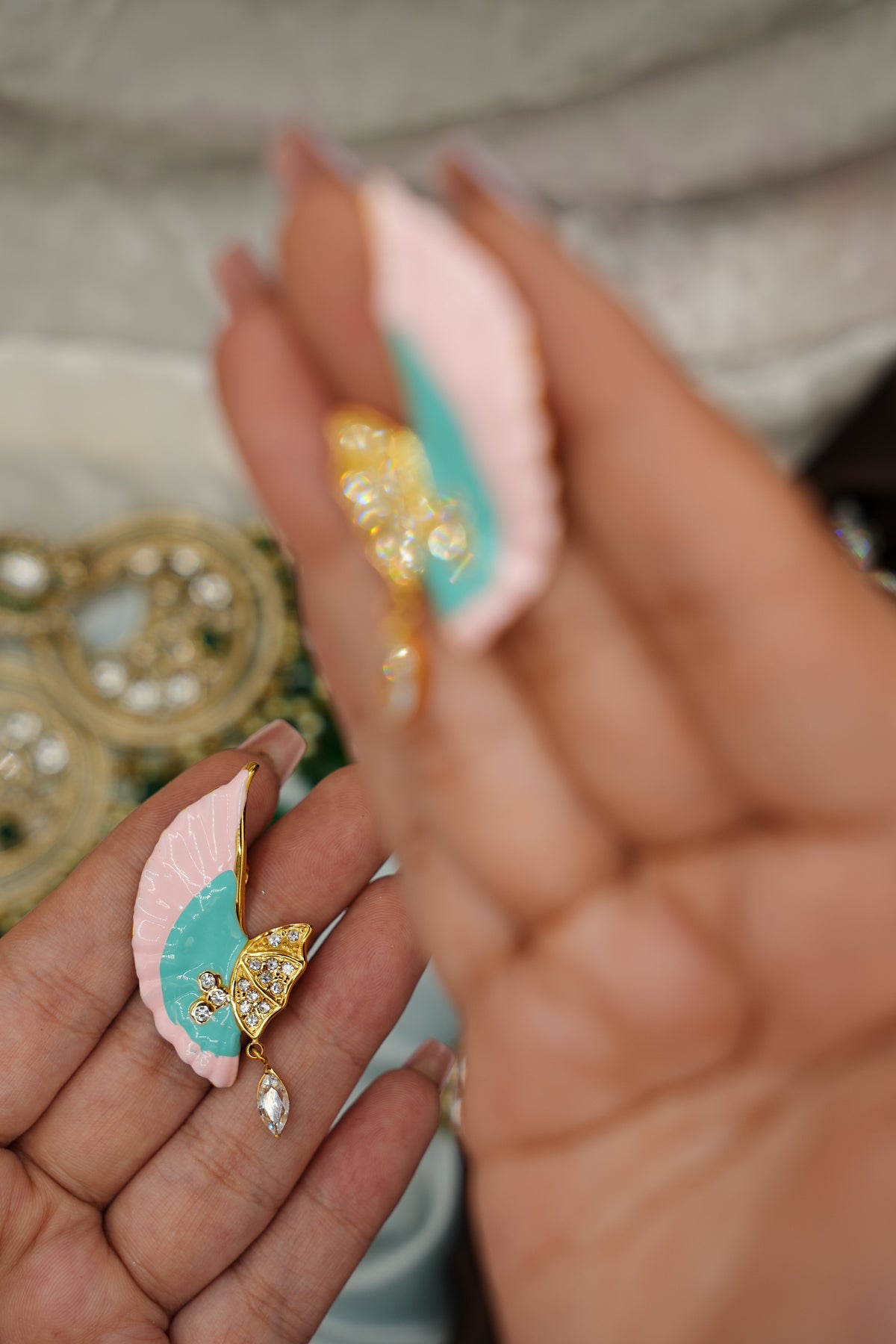 Butterfly Kiss is crafted from 92.5% sterling silver, ensuring durability and a luxurious finish. The intricate enamel work enhances its visual appeal, providing both aesthetic value and protection against wear. This piece serves as a versatile accessory, suitable for both formal and casual occasions.