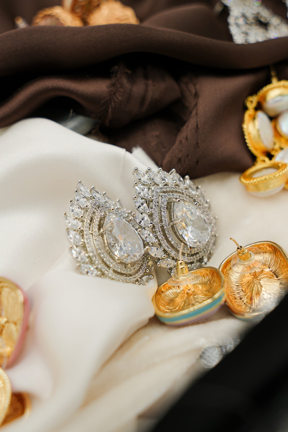Elegant 92.5 sterling silver piece finished with deep rhodium plating for a luxurious, long-lasting shine. Adorned with sparkling cubic zirconia stones that catch light beautifully. The rhodium treatment provides enhanced durability and resistance to tarnishing, keeping your jewelry looking pristine. Perfect for those who appreciate timeless sophistication with modern brilliance. A versatile addition to any collection.