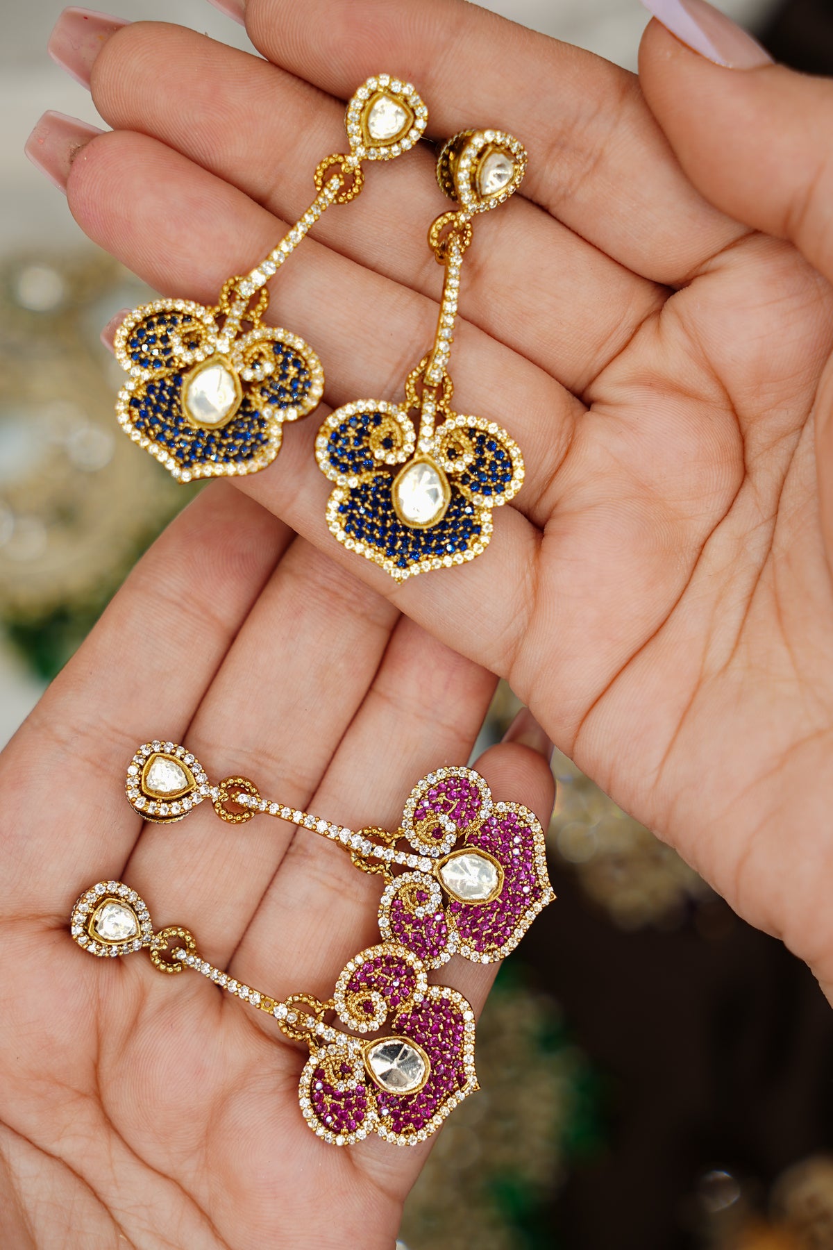 Eternal Shine captures timeless elegance with its exquisite craftsmanship. Crafted from premium 92.5 silver and finished with antique gold plating, this piece radiates warmth and sophistication. The stunning moissanite polki stones add brilliant sparkle and depth, creating a mesmerizing play of light with every movement. Perfect for those who appreciate traditional artistry combined with modern luxury, this jewelry piece is designed to become a cherished heirloom. The antique gold finish gives it a vintage charm while the moissanite ensures lasting brilliance and durability. An investment in timeless beauty that transcends trends.