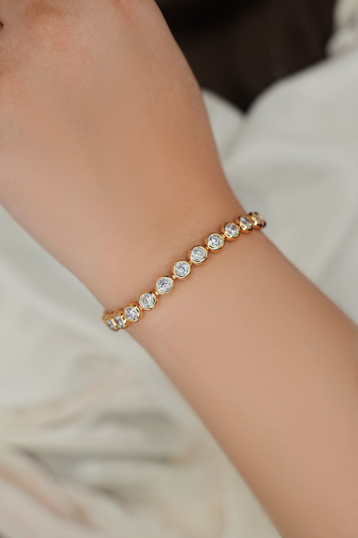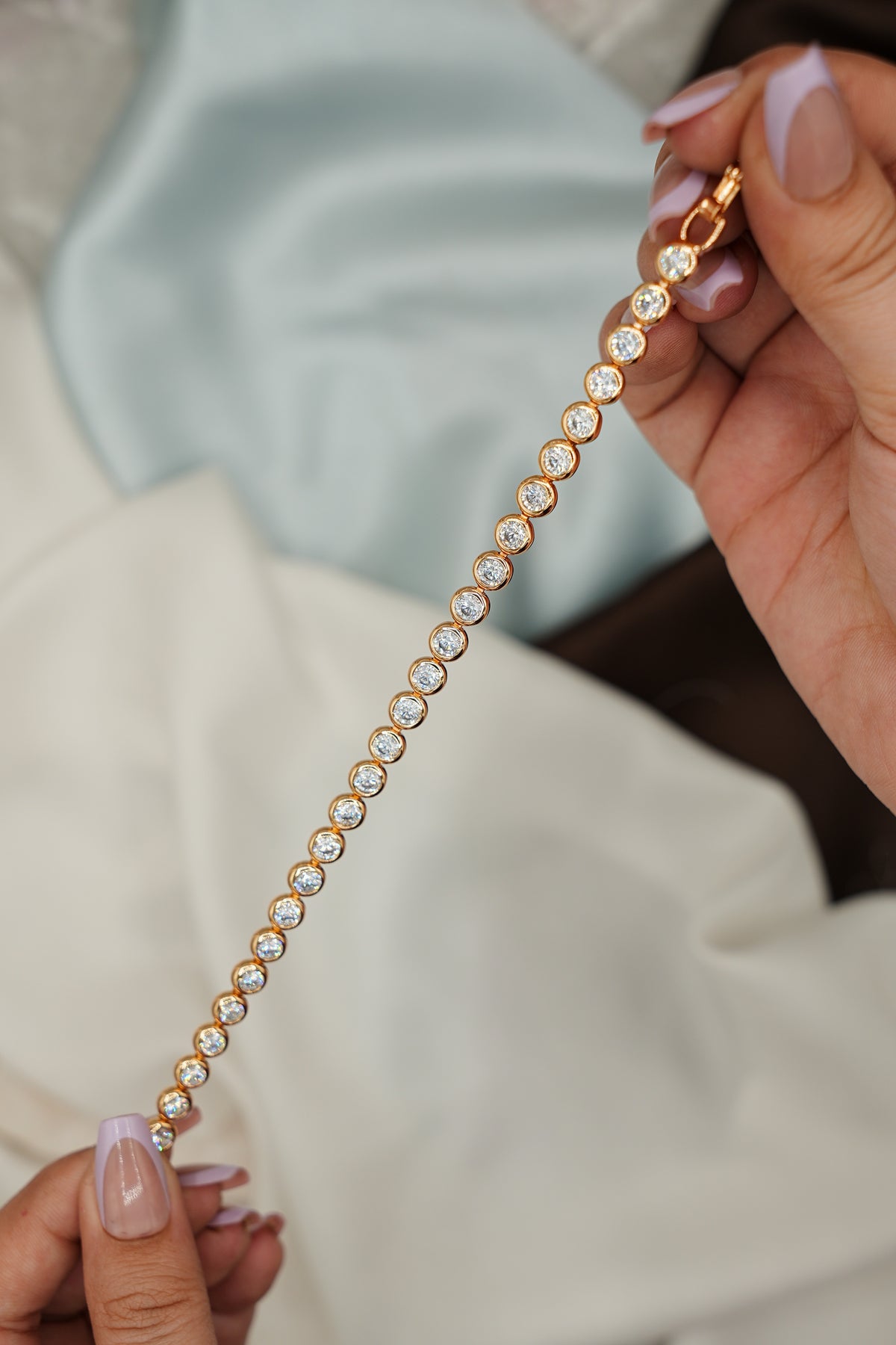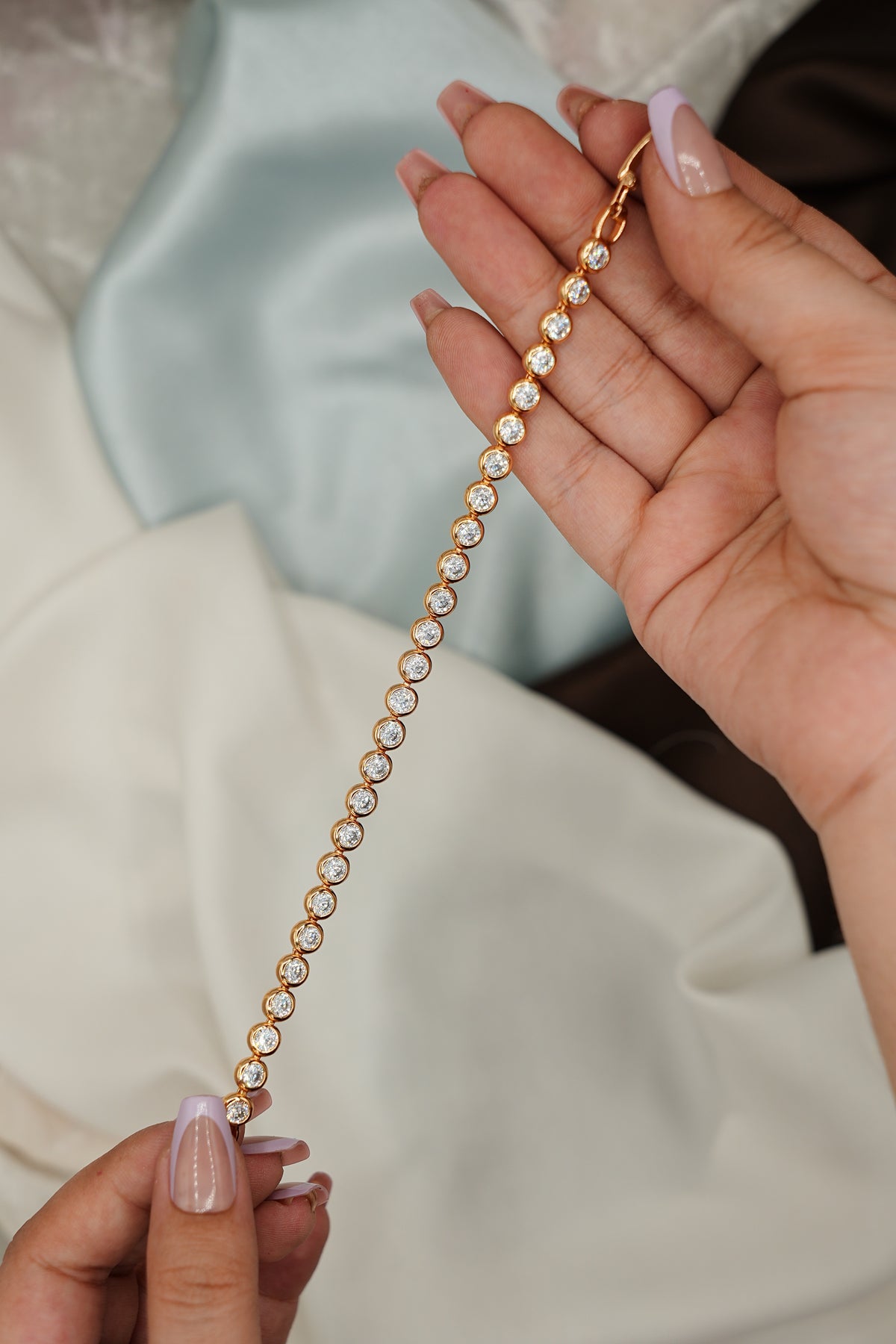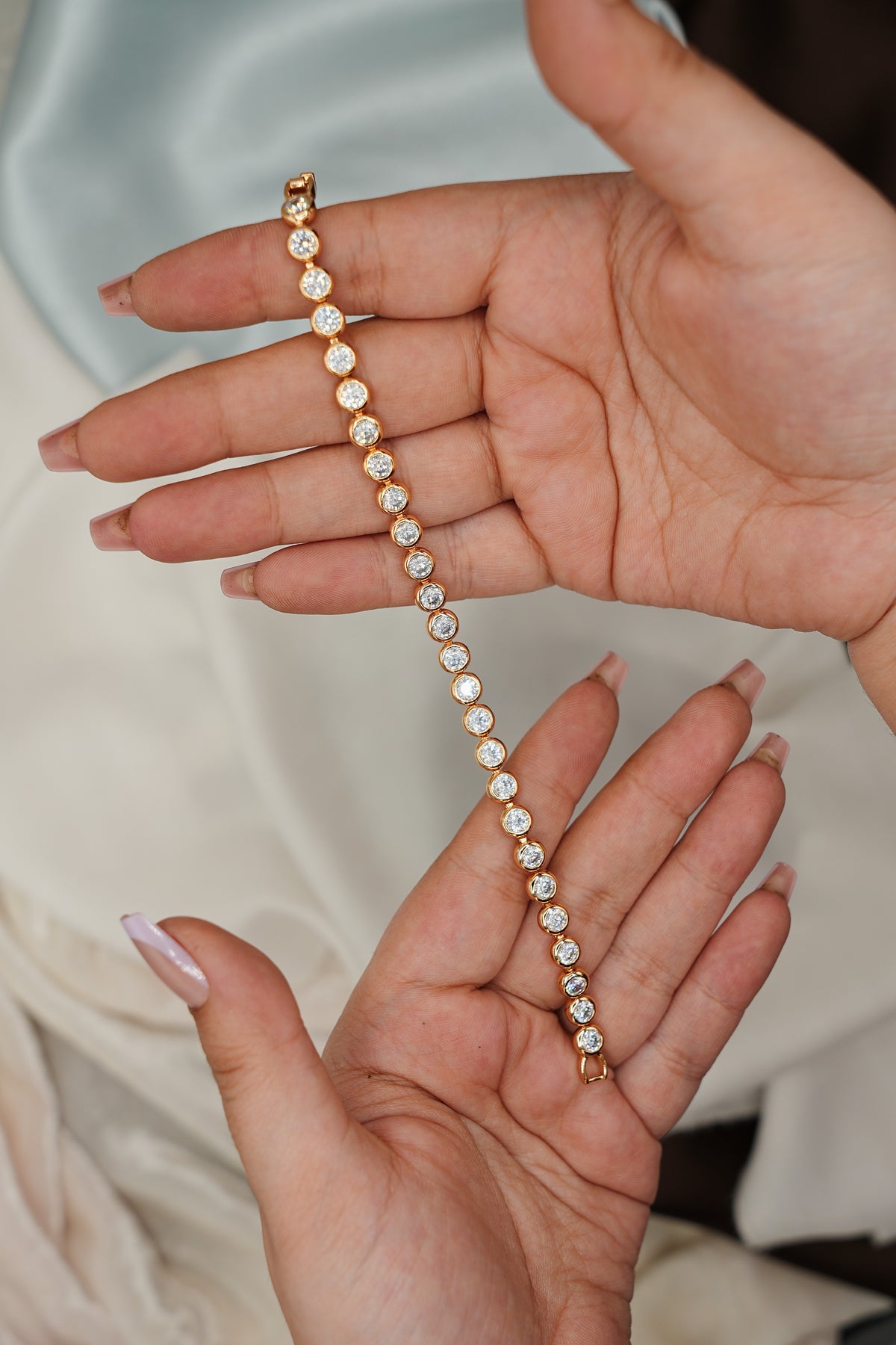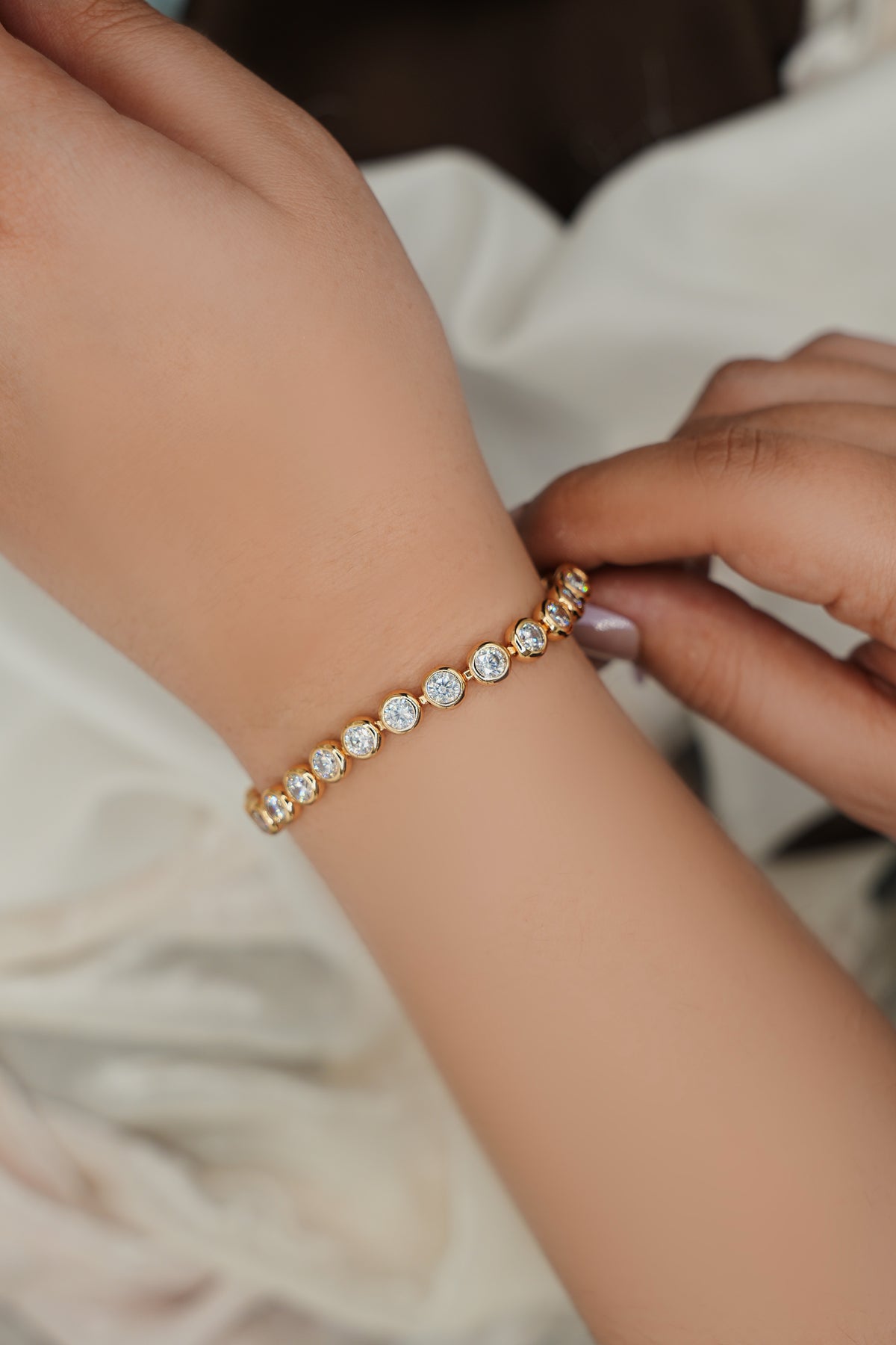 Golden Stream is crafted from 92.5% sterling silver and elegantly gold plated, featuring moissanites that provide exceptional brilliance. The use of high-quality materials ensures durability while offering a refined aesthetic, making it an ideal choice for those seeking both luxury and longevity in their jewelry collection.